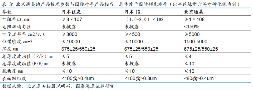 截至 2022 年 6 月,公司已拥有 61 项发明专利,并将大量工艺诀窍(Know-How)作为商业秘密进行严格保护。 公司高度重视供应链安全与垂直整合。公司不仅生产下游衬底,还向上游延伸,自产PBN 坩埚、高纯金属等关键原材料,从源头保障了高品质供应,有效控制了生产成本和交货周期。这种一体化的布局模式,使其在面对原材料波动时更具韧性。 公司建立了覆盖全球的客户网络,主要客户包括欧司朗(Osram)、艾迈斯半导体(ams OSRAM)、IQE、II-VI(现 Coherent)、Meta、Qorvo、Skyworks、Broadcom、稳懋半导体(Win Semiconductors)、三安光电、长光华芯等国内外知名外延片厂商、代工厂商和芯片器件制造商。公司于2022 年启动科创板 IPO,计划募集资金11.67 亿元,主要用于建设年产 50 万片 8 英寸砷化镓衬底的新产能,并补充流动资金。 (参考来源:国泰海通证券研究所)