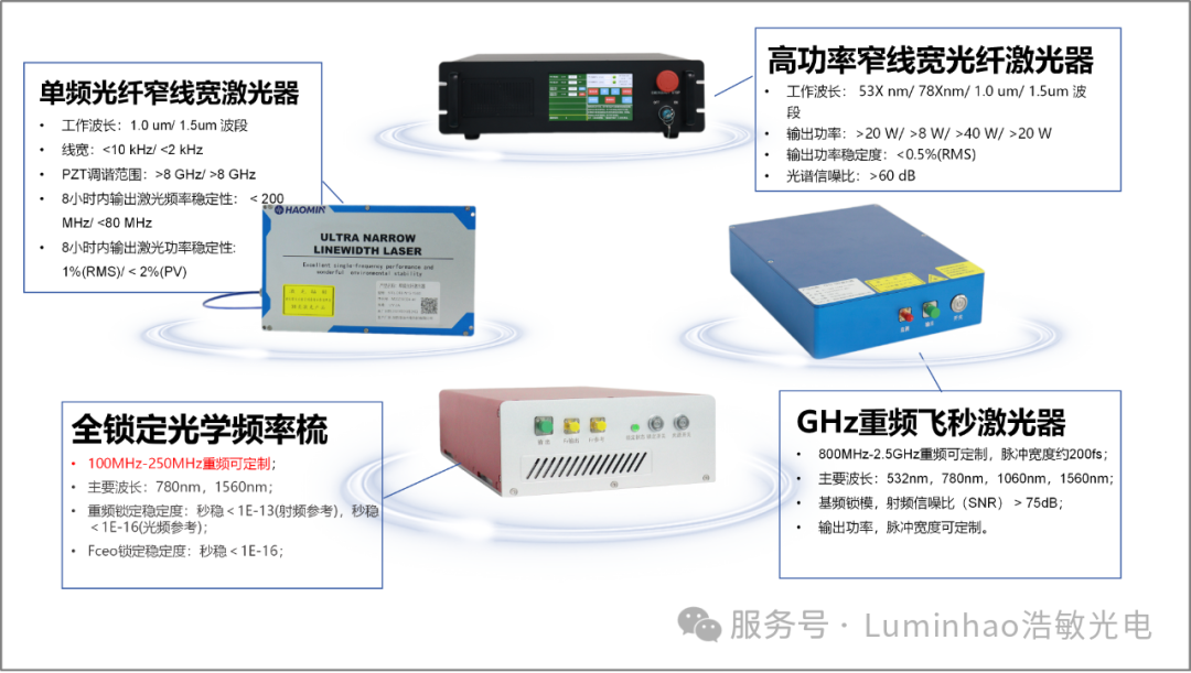 自成立以来,浩敏光电始终以提供高稳定“高精密光学引擎”为使命,专注于光学精密测量与加工的核心需求,在光电与精密测量领域展现出强劲且可持续的技术创新活力,其核心产品高稳定、高性能窄线宽激光器、飞秒激光器和光学频率梳产品助力我国光电领域科研攻关、并在光学原子钟、太赫兹产生、高精密测距、光纤时频传递、量子通信、相干合成等应用领域提供解决方案。